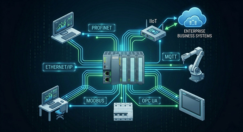 Наиболее значимой тенденцией в 2026 году станет конвергенция операционных технологий (ОТ) и информационных технологий (ИТ). Именно здесь вступает в игру **IIoT**. Современные **ПЛК** больше не изолированы. Благодаря таким протоколам, как OPC UA и MQTT, **ПЛК** теперь может передавать данные о производительности в реальном времени непосредственно на облачные платформы, такие как AWS или Azure.